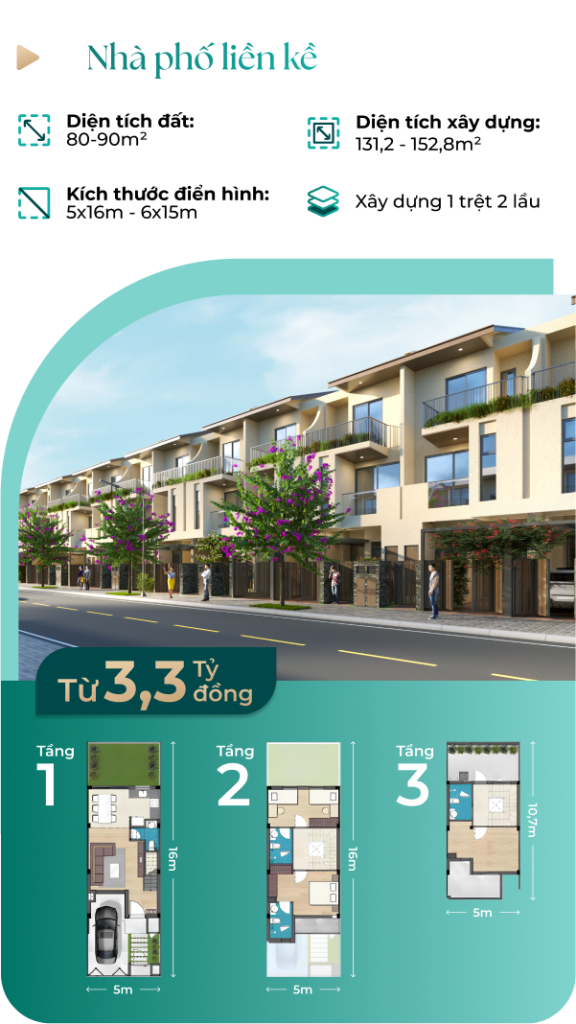 Giá tốt từ 3,3 tỷ - Sở hữu nhà phố 3 tầng, gần 100m2 đất thổ cư, 5 phút đến Sài Gòn