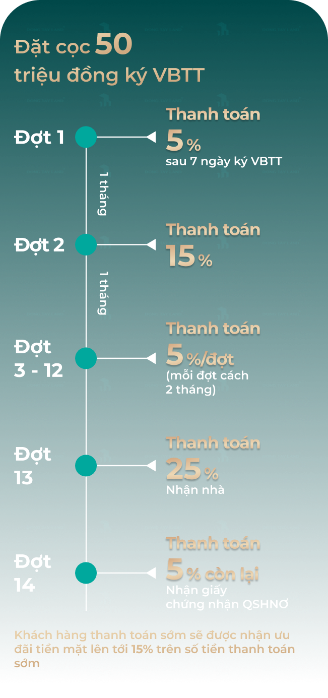 Kèm lịch thanh toán nhẹ nhàng và HTLS tới 24 tháng, đến khi nhận nhà